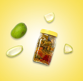 Delicious homemade-style mango pickle with a perfect blend of spices. Tangy, spicy, and flavorful – the ideal companion for any meal.